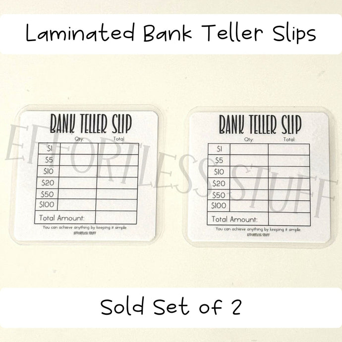 Laminated Bank Teller Slips | Sets of 2 | Physical Product |
